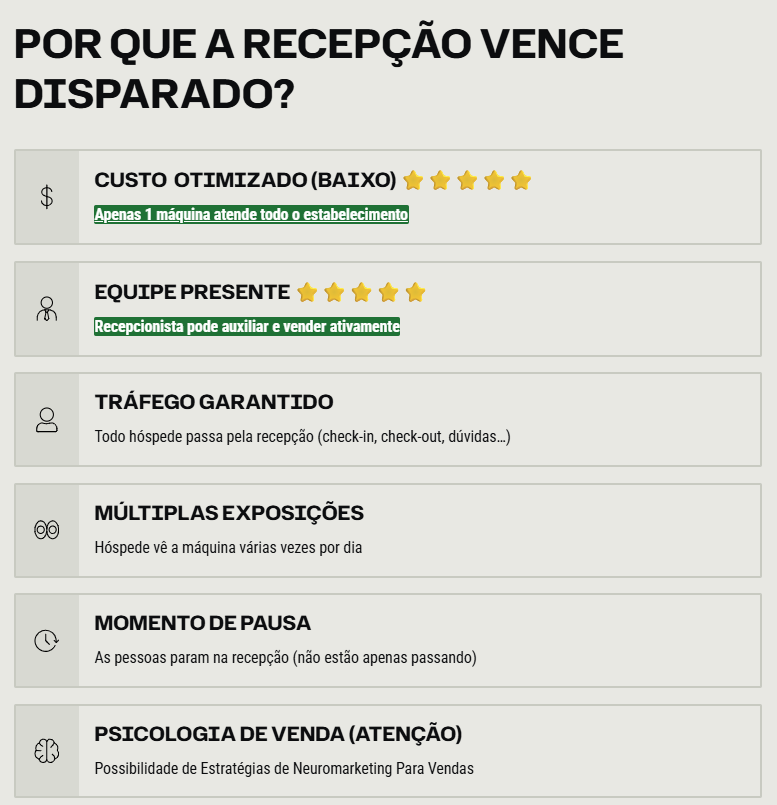 Mesmo tendo um hotel maior para mim compensa usar somente uma máquina na recepção do que uma em cada quarto
