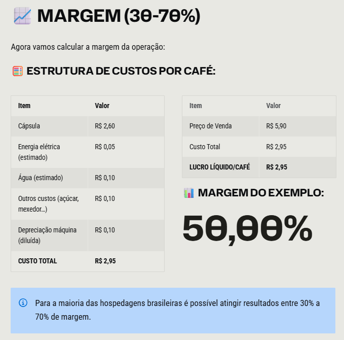 Os hóspedes reclamavam que não tinha café expresso por perto. Depois que implementei, as avaliações no Booking subiram de 8,7 para 9,1. E ainda lucro todo mês. É ganha-ganha total.